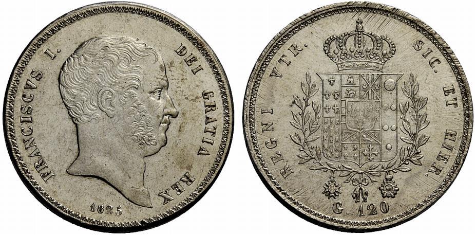 Napoli. Francesco I di Borbone, 1825-1830. Piastra 1825. Pagani 109. Pannuti-Riccio 6. MIR 476. Migliore di Spl