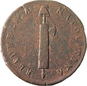 Monete e Medaglie di Zecche Italiane. Napoli. Repubblica Partenopea (23 gennaio-19 giugno 1799). 6 tornesi sigle Z.N. MIR 415. P.R. 3a. AE. g. 18.50 RR. MB+.