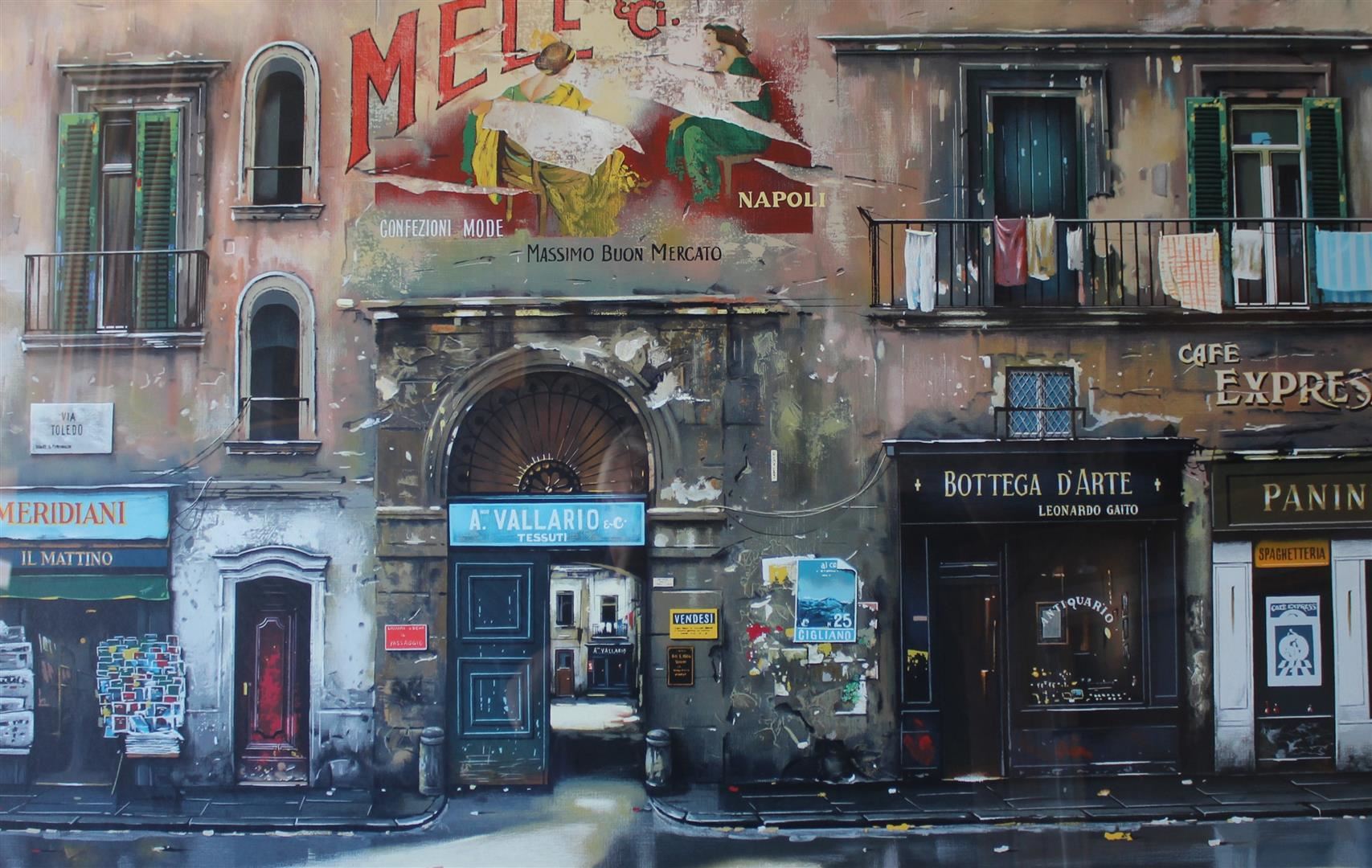 Thomas Pradzynski melds a realistic technique with the romantic subject matter of this southern Italian city sidewalk devoid of people. This serigraph #AP16/25 measures 32.5 x 48; framed images measures approx. 44.5 x 60.