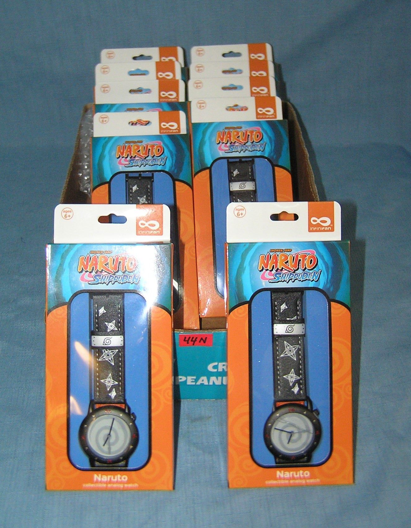Box full of Narato Shippuden collectible analog watches by Infinifan all mint new in boxes est. value 250.00-350.00