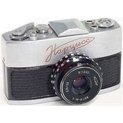 Krasnogorsk, UdSSR, SLR 14 x 21 mm, rote kyrillische Beschriftung, schwarze Belederung, Vega 2,8/35, Objektivdeckel und Tasche. Cyrillic red letters, black leather, with lens cap and case. - (2/2) - € 190/250 - (62/137)