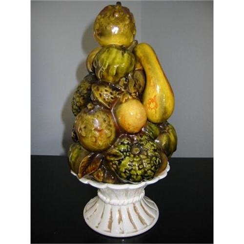 perfect for fall season. bowl of fruits and vegetables harvests from NARCO, MARKED AND NUMBERED : NARCO W SYMBOL E-2856. 12.5 inch tall and 4.5 base in diam. the bowl is off white and the fruits and harvests has a special glaze. it is in very good condition w minor chip visible on the base and vintage imperfection.