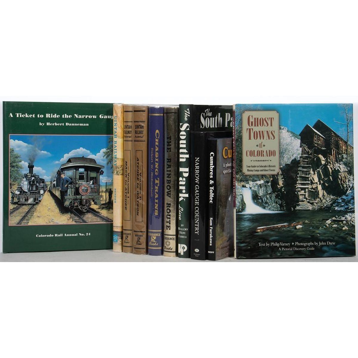 Narrow GaugeUintah Railway Pictorial : Volume I - Mack to Atchee by Rodger Polley Copyright 1999 ( autographed by the author ) Narrow GaugeUintah Railway : The Gilsonite Route by Henry Bender, Jr. Copyright  1970 Narrow GaugeA ticket to Ride the Narrow Gauge by Herbert Danneman [ Colorado Rail Annual No 24] Copyright  2000 Narrow GaugeUintah Railway Pictorial : Volume II - Atchee to Watson by Rodger Polley Copyright  2002 Narrow GaugeChasing Trains : The Lifetime Story of the Founder of the Colorado Railroad Museum by Robert Richardson © 1995 Narrow GaugeThe Rainbow Route : an Illustrated History by Robert Sloan and Carl Skowronski Copyright  1975 Ghost TownsGhost Towns of Colorado by John Drew and Philip Varney Copyright  1999 Narrow GaugeCumbres & Toltec : A photographic tribute to America’s most spectacular scenic railway by Sam Furukawa Copyright  2007 Narrow GaugeThe South Park Line by Mallory Ferrell Copyright 2003 Narrow GaugeNarrow Gauge Country 1870 - 1970 by Mallory Ferrell Copyright 2006