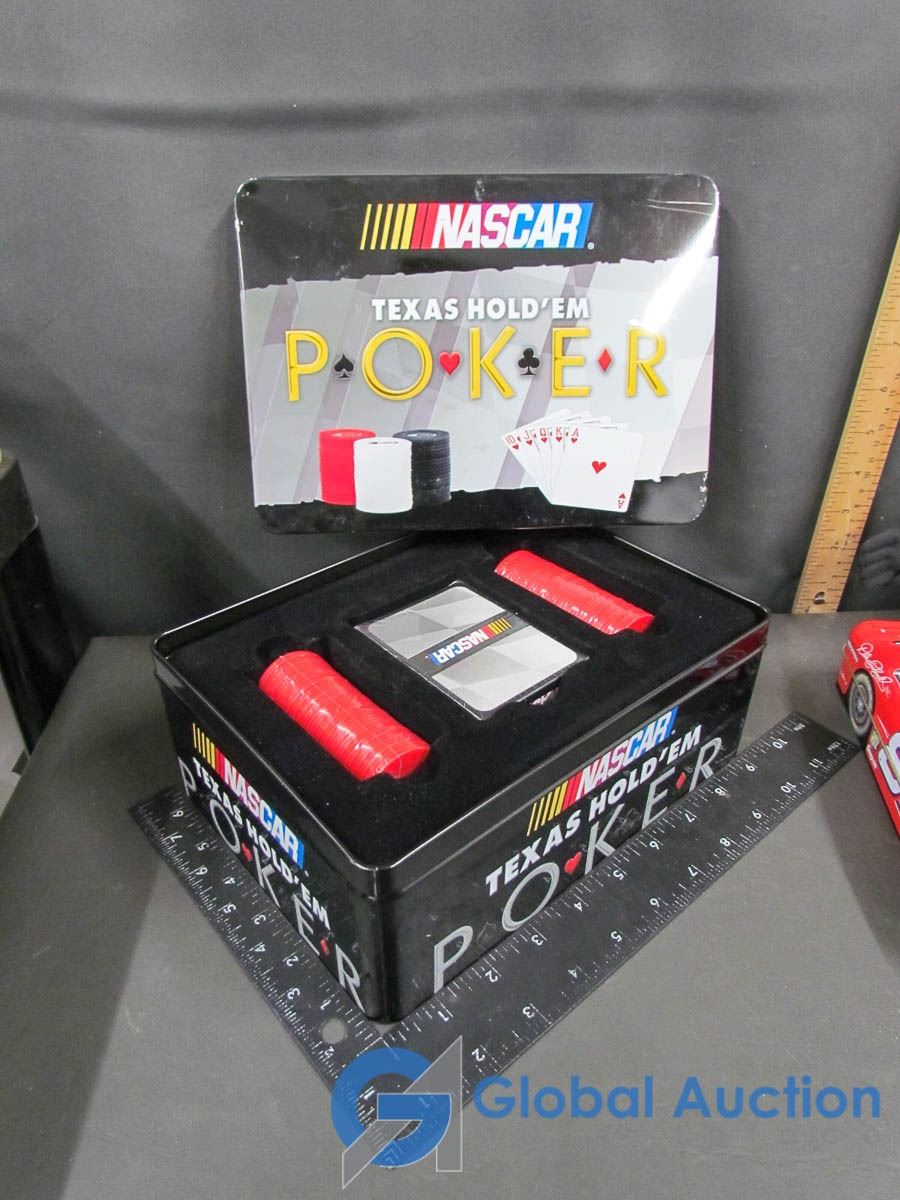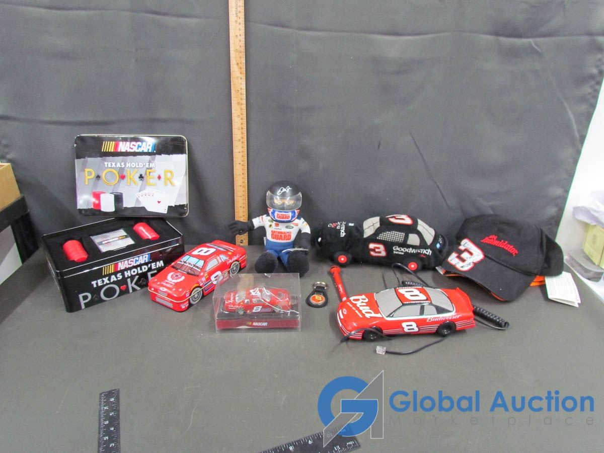 NasCar Mobilia: Budweiser Nascar Corded Phone: Texas Hold’em Poker Tin Set, Car Model, Stuff Race Car Driver,Etc.