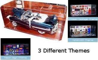 This unique display case is designed to fit your 1:24 Scale Vehicle. Show off your treasures while protecting them in these beautiful cases that feature: Crystal clarity, Beveled edges, and is stackable. Interior Dimensions: (9″ x 4-3/8″ x 4-1/8″) (vehicles sold separately). The retail box includes three cut-out background images allowing you to create your own diorama. Those images include a MODERN CAR GARAGE great for NASCAR™ or Drag Cars, a CLASSIC CAR GARAGE SCENE great for older style cars, and a NEON SIGNS background. This is for a case of 3 of these 1:24 display cases.
