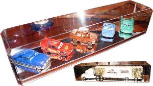 This product is injection molded, using water-clear polystyrene. The result is a very clear, hard (rigid) plastic container, that displays the contents well. Perfect For 1:64 scale trucks, haulers, or 1:64 Scale Cars. Overall Size - 15.625" x 3.625" x 3.123". A great way to display your diecast with Mirror-like board base. (Diecast not included) Crystal clarity, Beveled edges, and is stackable.