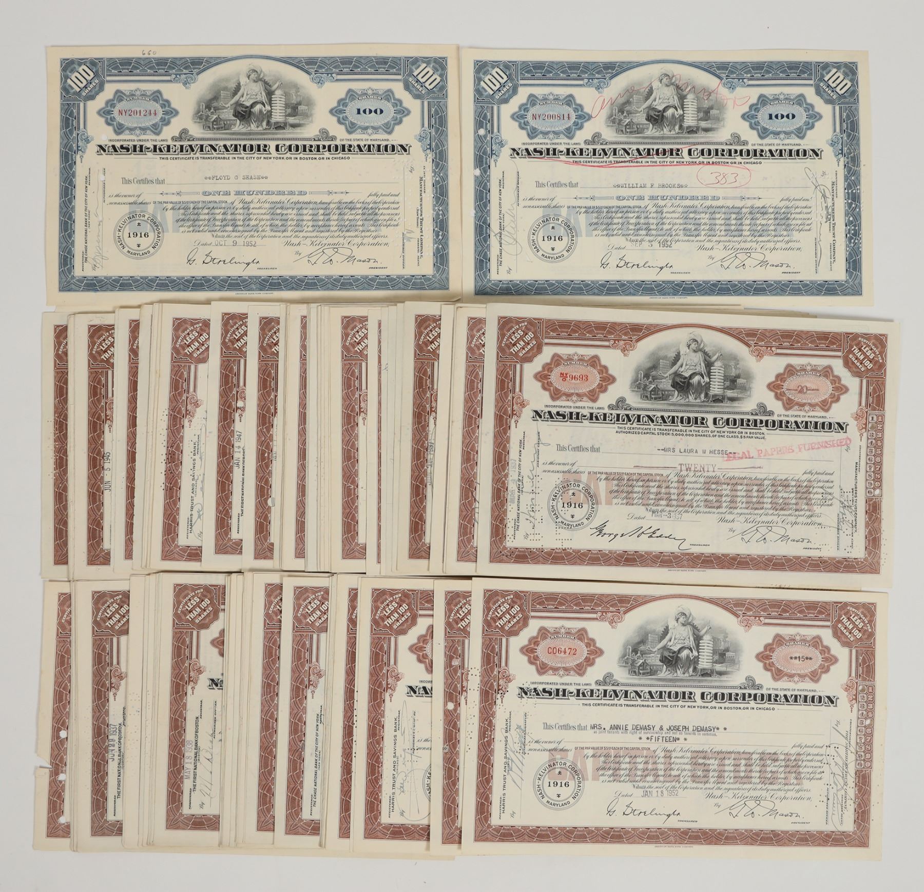 Nash -Kelvinator Corp. Stocks c.1930-1950 About 120 stocks Issued c1930s-1950s. The Nash-Kelvinator Corporation was formed in 1937 when the Nash Motors Company of Kenosha, Wisconsin, merged with the Kelvinator Corporation of Detroit, Michigan. The company's headquarters were located at the expanded Kelvinator facility on Plymouth Road in Detroit, which later became the headquarters for the merged company, American Motors Corporation (AMC), in 1954. See photo.
