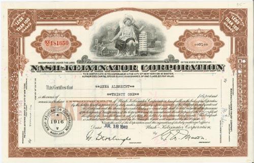 1949. Maryland. Stock certificate for 31 shares. Brown/Black. Vignette of female allegorical figure at top center. Perferation cancelled. Very fine.