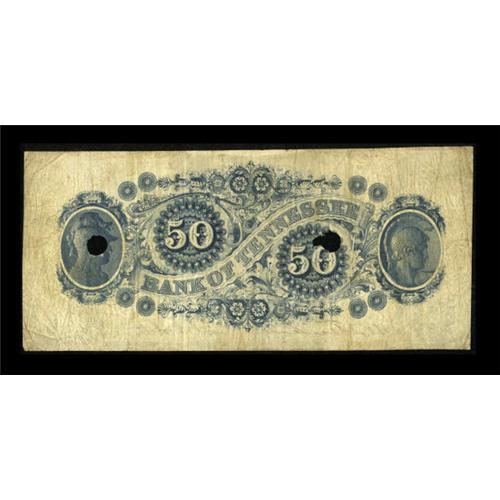 <B>Nashville, TN- Bank of Tennessee</B></I> $50 Nov. 1, 1860 Garland 437 G200c<BR> Issued at Knoxville, this is a very rare example with an ochre tint that we have not encountered previously. <B>Fine, </B></I>with two POC and a blue reverse. <BR><BR><b>Shipping:</b> Coins & Currency (<a target="_blank" href="http://www.heritageauctions.com/common/shipping.php">view shipping information</a>)