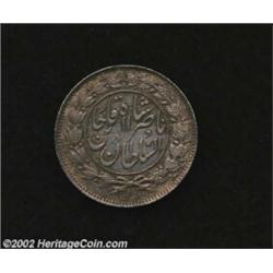 Nasir Al-Din Silver Pattern 1000 Dinars 1294AH, KM899 similar. Probably a transitional pattern struck in Brussels. Toned AU and very attractive. Important notice: We expect to be auctioning lots at the rate of 200-250 per hour. Sometimes eBay Premier live bid software cannot keep up with that pace, so we strongly recommend that you place a realistic proxy bid now as insurance to avoid disappointment. Also please note that all Heritage/CAA lots purchased through eBay Premier carry a 20% Buyer's Premium. Please make sure you read the Terms and Conditions.