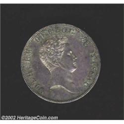 Nassau. Wilhelm Thaler 1837, KM49, Uncirculated, flan flaws on the portrait. Lightly toned in steel-violet and olive-gold shades. Final year of type. Important notice: We expect to be auctioning lots at the rate of 200-250 per hour. Sometimes eBay Premier live bid software cannot keep up with that pace, so we strongly recommend that you place a realistic proxy bid now as insurance to avoid disappointment. Also please note that all Heritage/CAA lots purchased through eBay Premier carry a 20% Buyer's Premium. Please make sure you read the Terms and Conditions.