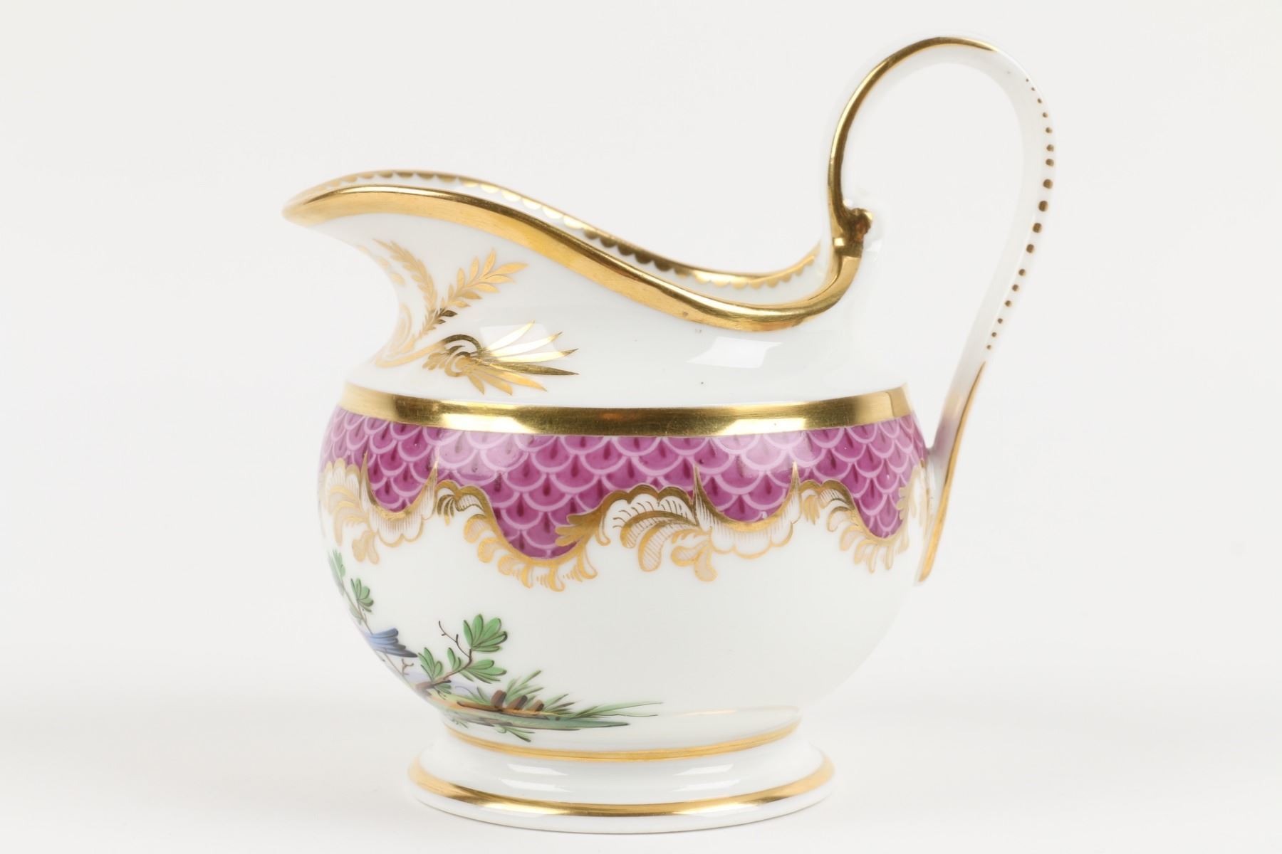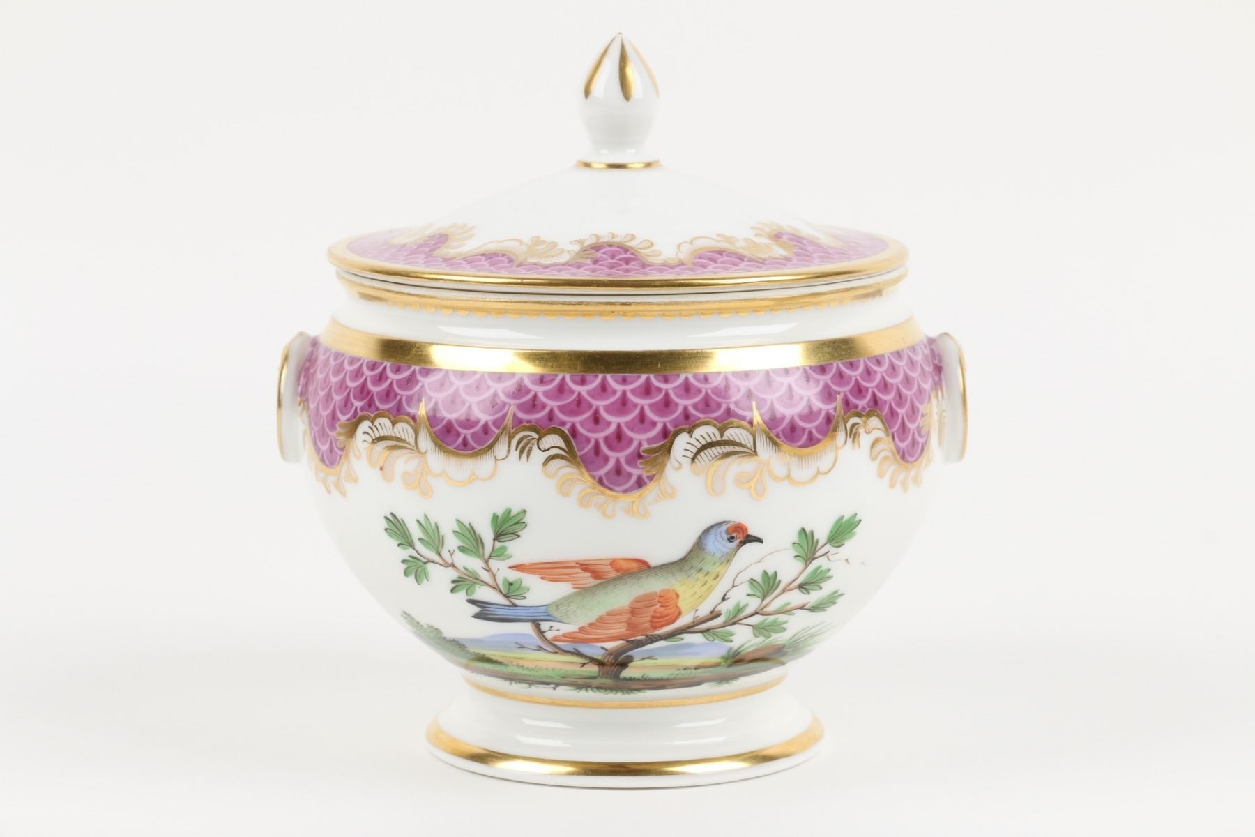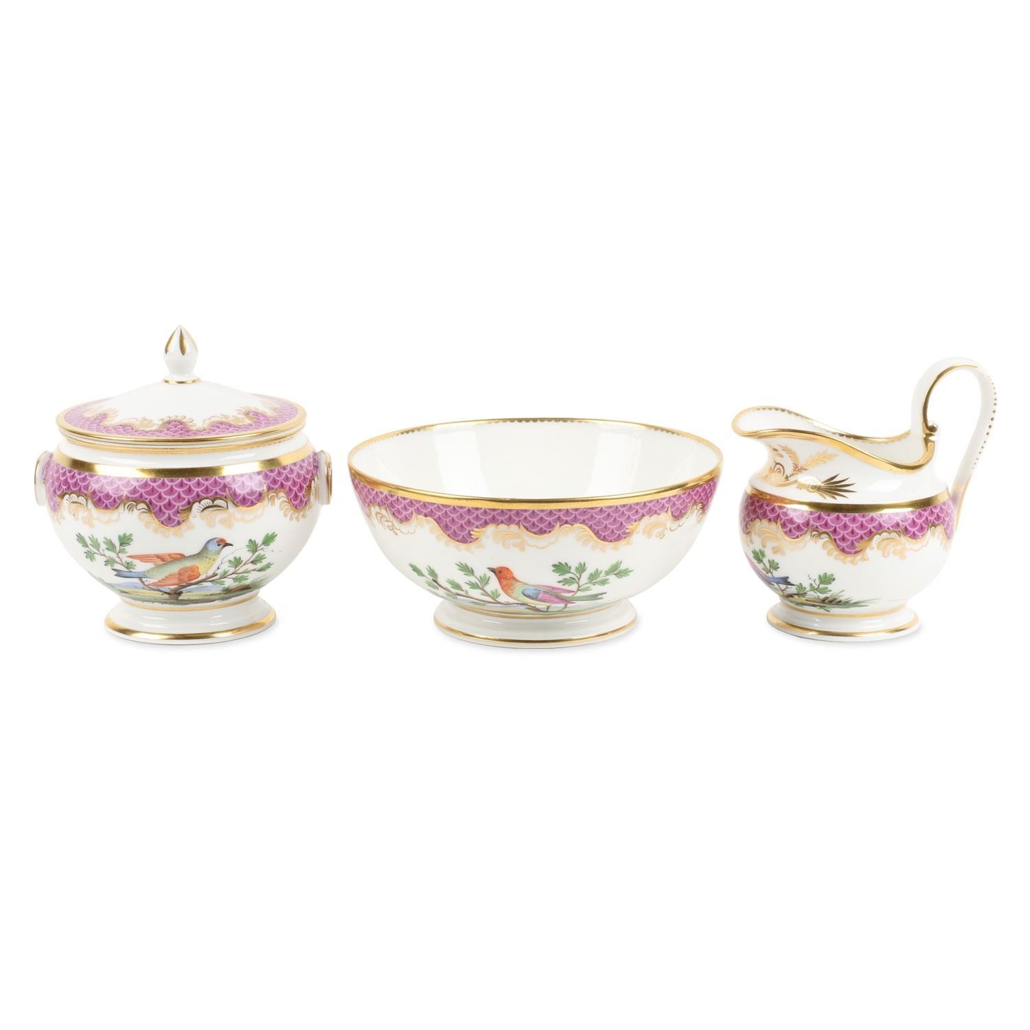 Lot 78 - French. Three (3) pieces. Includes miniature pitcher and bowl and covered bowl. Ornithological decoration. Each piece signed "NAST PARIS", underside. A flake to the inner rim of the bowl has been re-applied. $200-300.