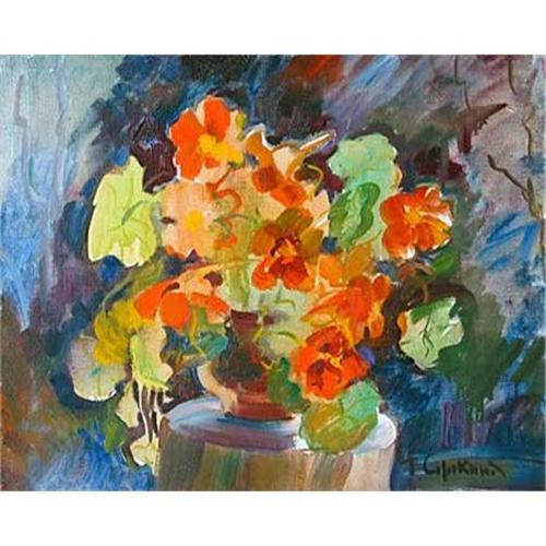 <tr><td>Title:"Nasturtiums" oil in impressionism style</td></tr>