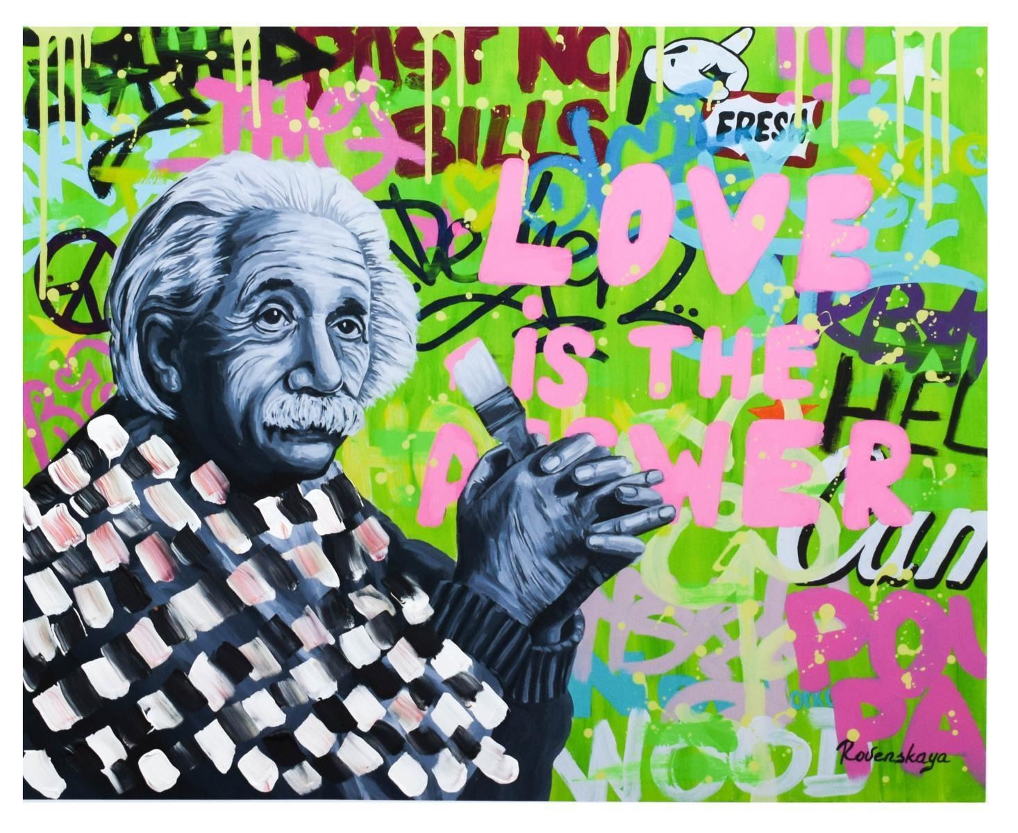 Artist: Nastya Rovenskaya. Medium: Mixed Media. Title: Love is the Answer. Size (Unframed): 24" x 30". Certificate of Authenticity: From the publisher. Additional: Original one of a kind. Unframed. Reference# 12081.