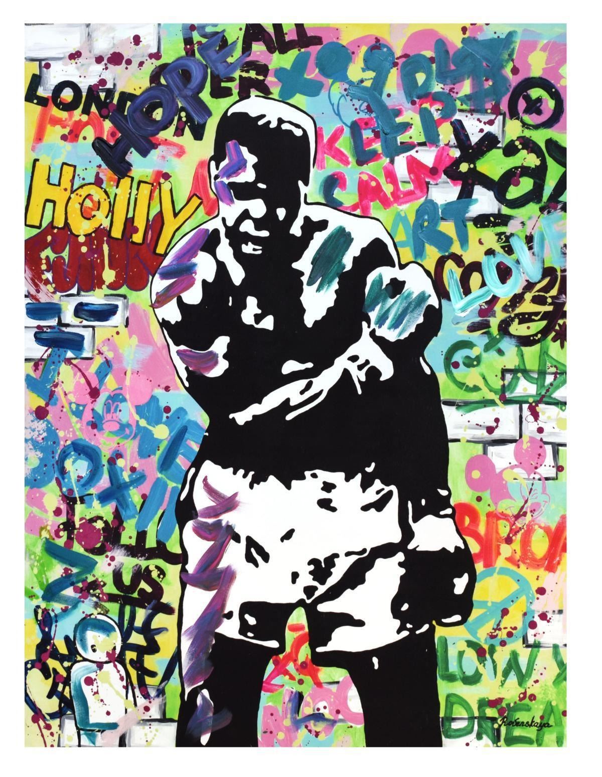 Artist: Nastya Rovenskaya. Medium: Mixed Media. Title: Muhammad Ali. Size (Unframed): 40" x 30". Certificate of Authenticity: From the publisher. Additional: Original one of a kind. Unframed. Reference# 11386.