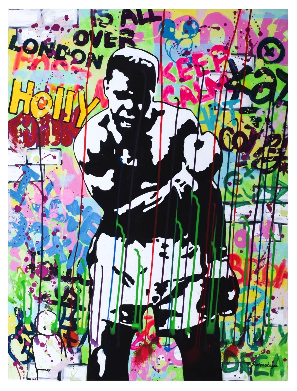 Artist: Nastya Rovenskaya. Medium: Mixed Media. Title: Muhammad Ali. Size (Unframed): 40" x 30". Certificate of Authenticity: From the publisher. Additional: Original one of a kind. Unframed. Reference# 12098.