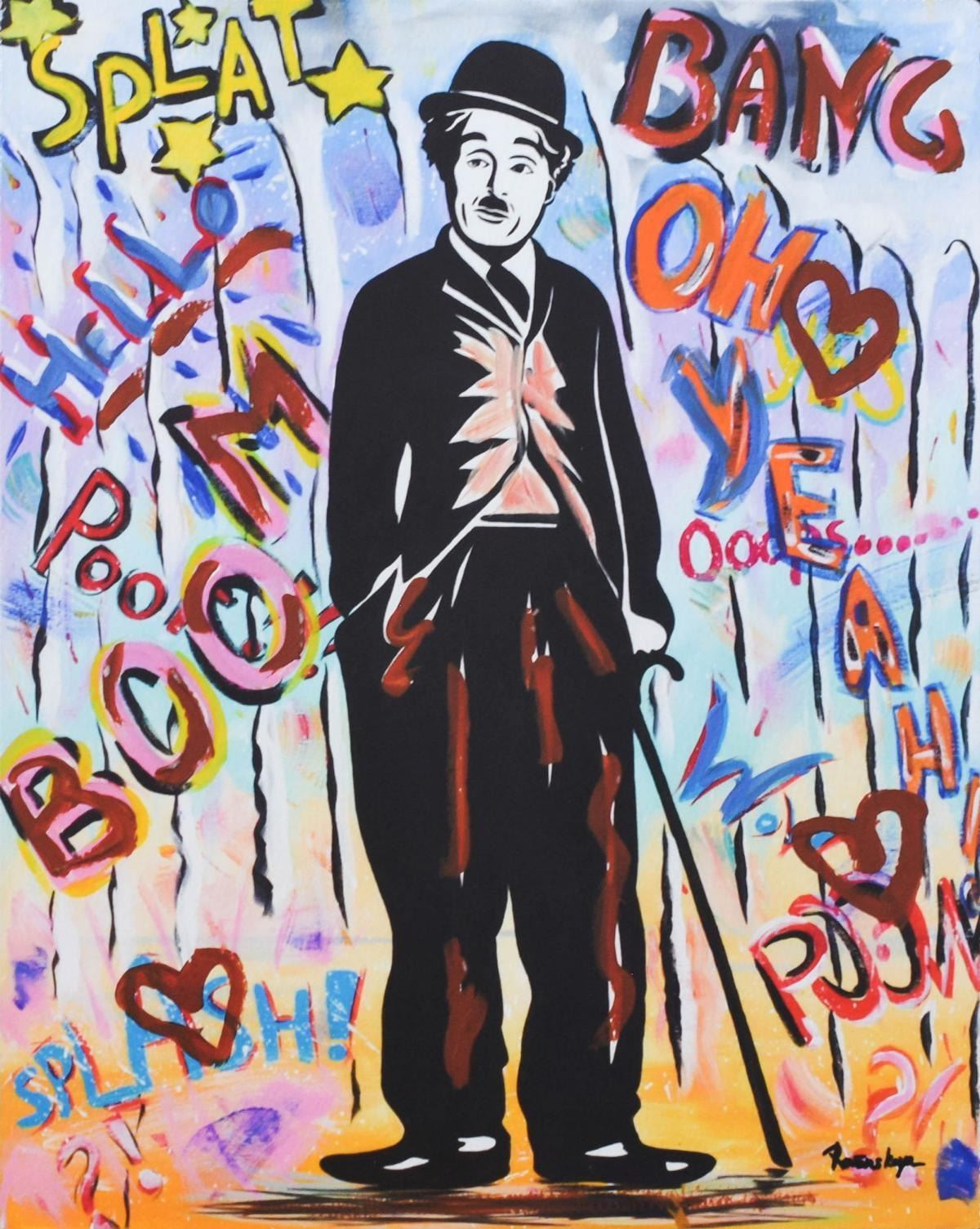 Artist: Nastya Rovenskaya. Medium: Mixed Media on Paper. Title: Chaplin. Size (Unframed): 16" x 12". Size (Framed): 22" x 18". Certificate of Authenticity: From the publisher. Reference# 12743.
