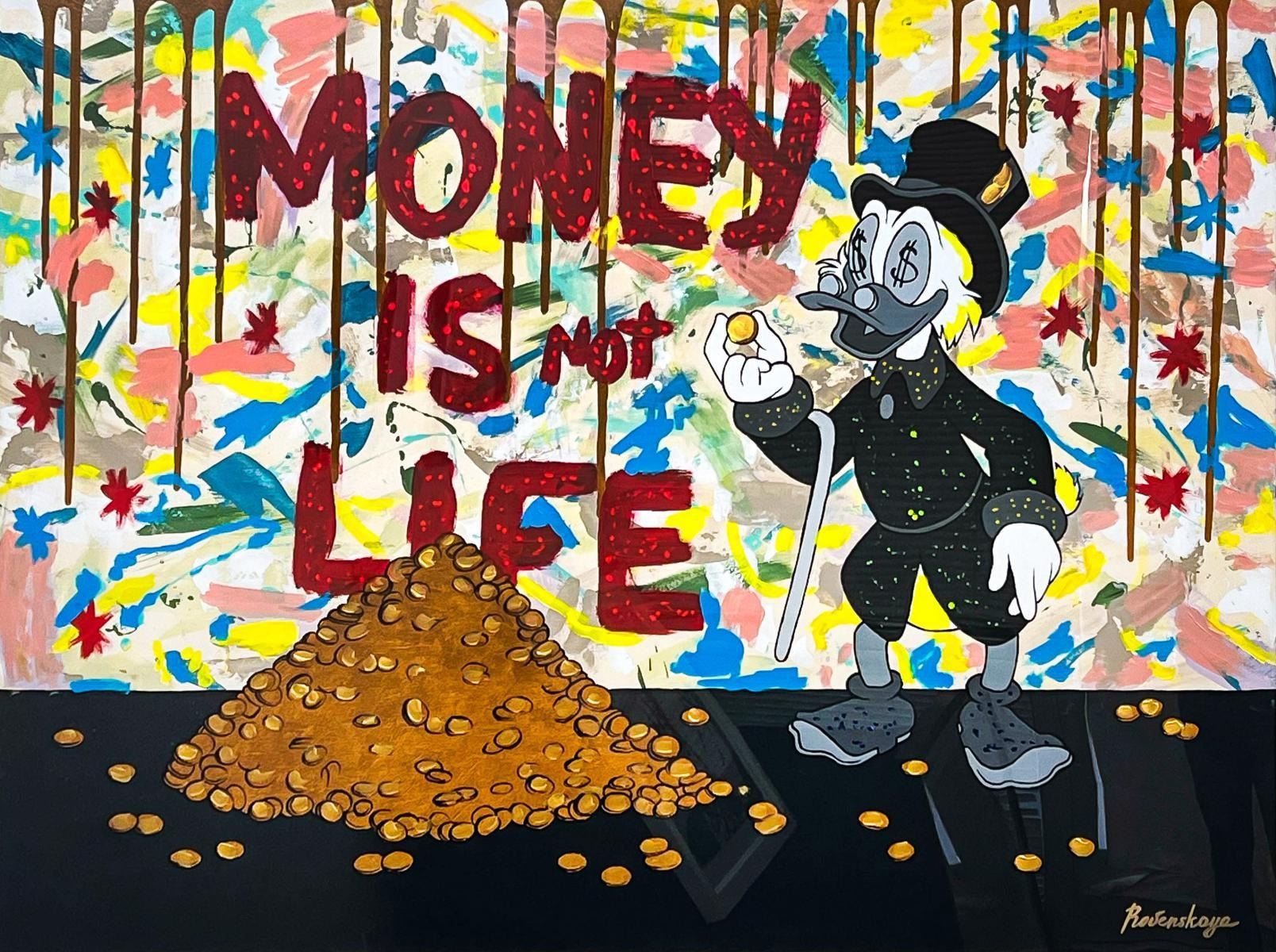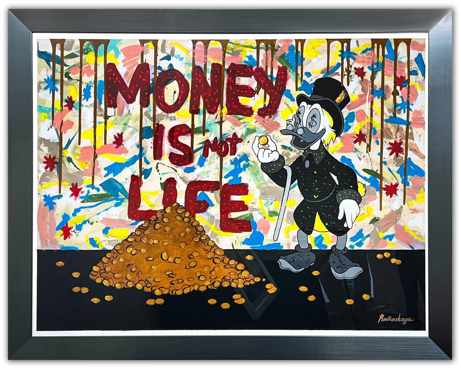 Artist: Nastya Rovenskaya. Medium: Original Mixed Media on Paper. Title: Money is Life. Size (Unframed): 38" x 50". Measures approx. (Framed): 46" x 58". Certificate of Authenticity: From the publisher. Additional: Custom framed. Reference# 16623.