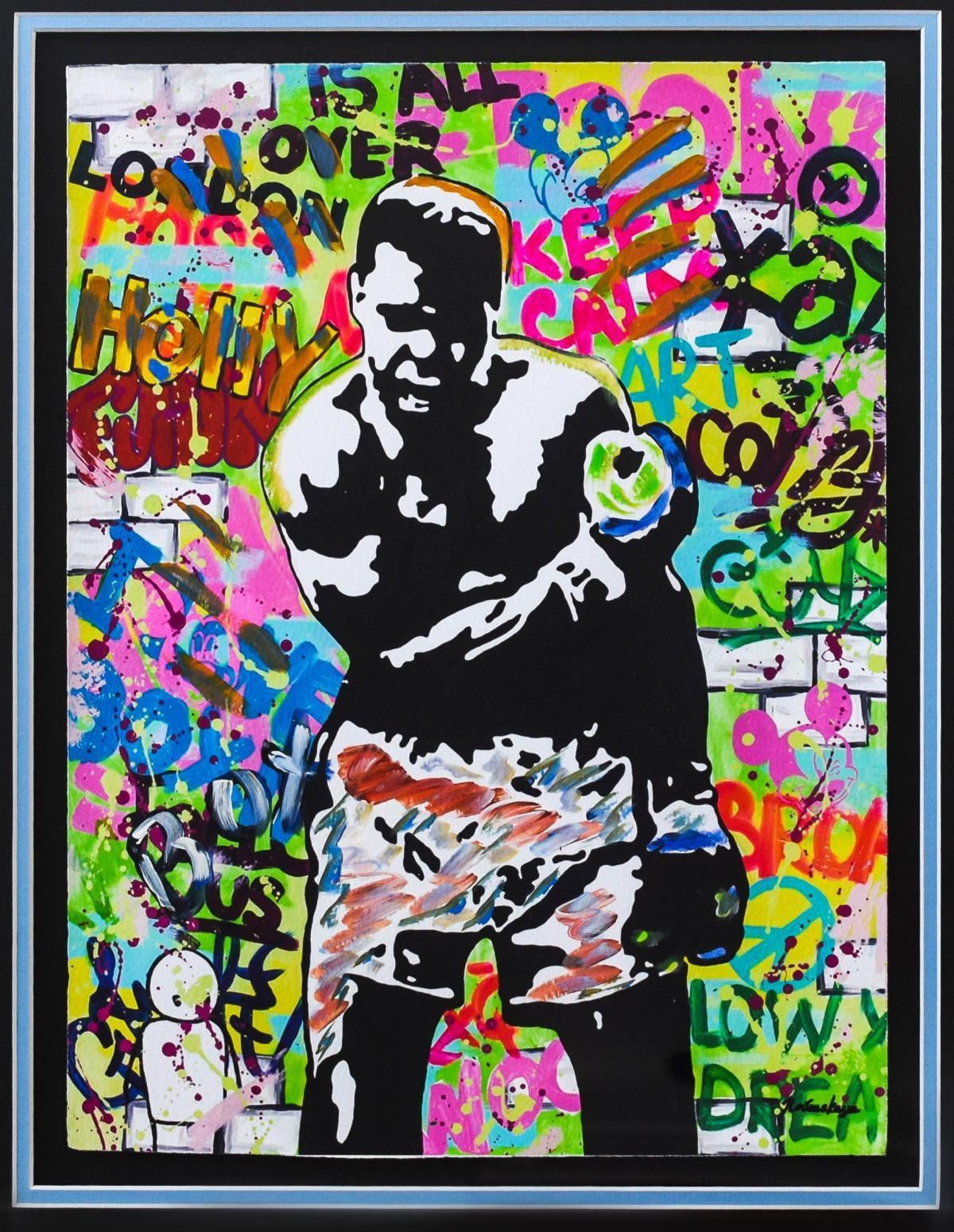 Artist: Nastya Rovenskaya. Medium: Original Mixed Media on Paper. Title: Muhammad Ali. Size (Unframed): 20" x 16". Size (Framed): 25" x 20". Certificate of Authenticity: From the publisher. Additional: Custom Framed. Reference# 13249.