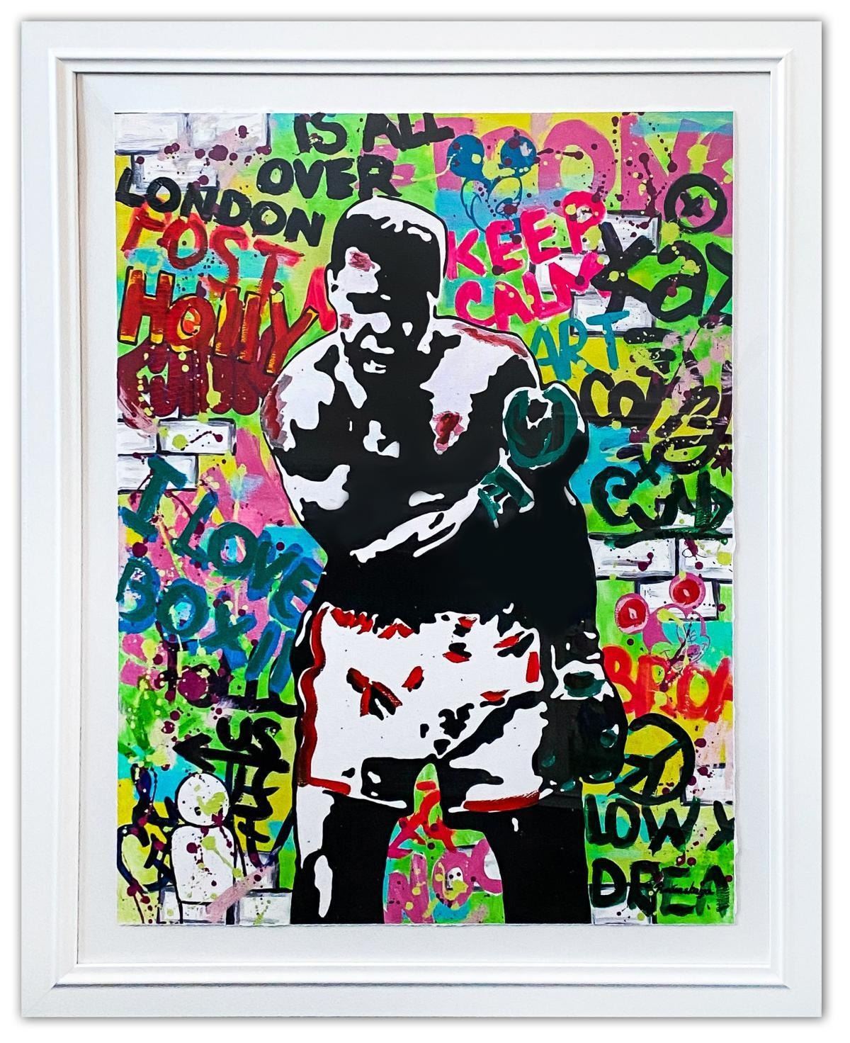 Artist: Nastya Rovenskaya. Medium: Original Mixed Media on Paper. Title: Muhammad Ali. Size (Unframed): 40" x 30". Size (Framed): 49" x 39". Certificate of Authenticity: From the publisher. Additional: Custom Framed. Hand signed by the artist. Reference# 13886.
