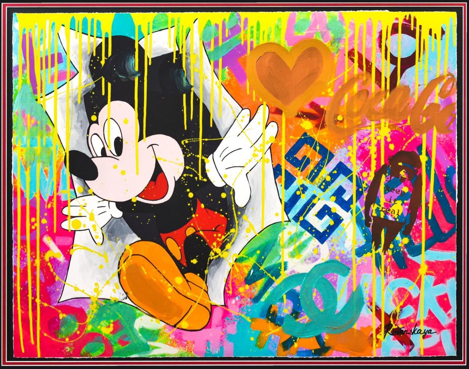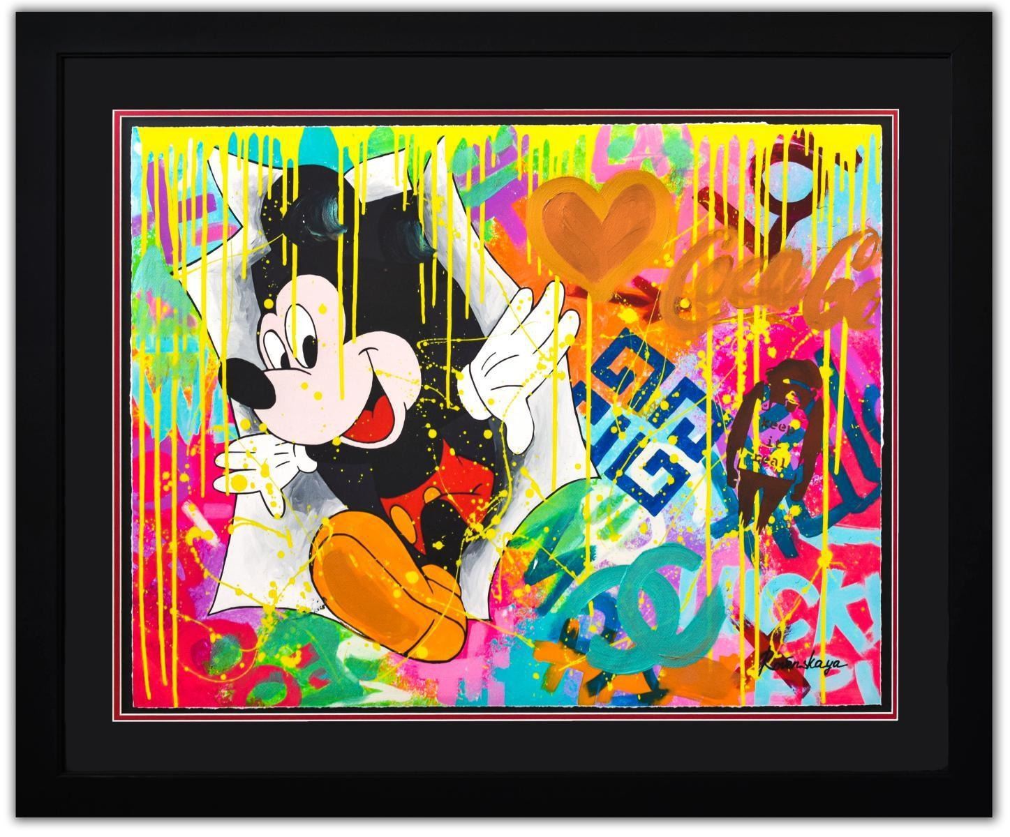 Artist: Nastya Rovenskaya. Medium: Original Mixed Media on Paper. Title: Surprise by Mickey Mouse. Size (Unframed): 23" x 30". Size (Framed): 32" x 39". Certificate of Authenticity: From the publisher . Additional: Custom framed. Reference# 15925.
