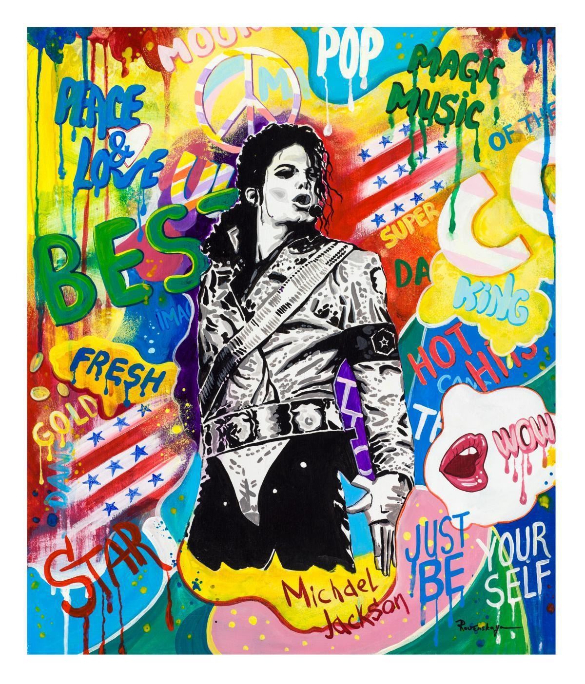 Artist: Nastya Rovenskaya. Medium: Original Oil on Canvas. Title: King of Pop. Size (Unframed): 24" x 20". Certificate of Authenticity: From the publisher. Reference# 10868.