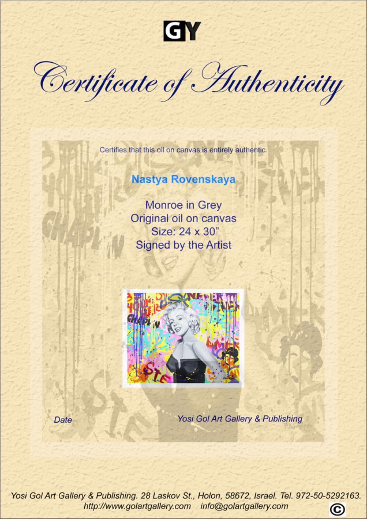 Artist: Nastya Rovenskaya. Medium: Original Oil on Canvas. Title: Monroe in Grey. Size (Unframed): 24" x 30". Certificate of Authenticity: From the publisher. Reference# 10297.