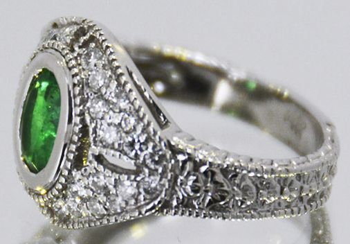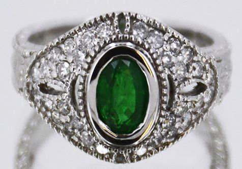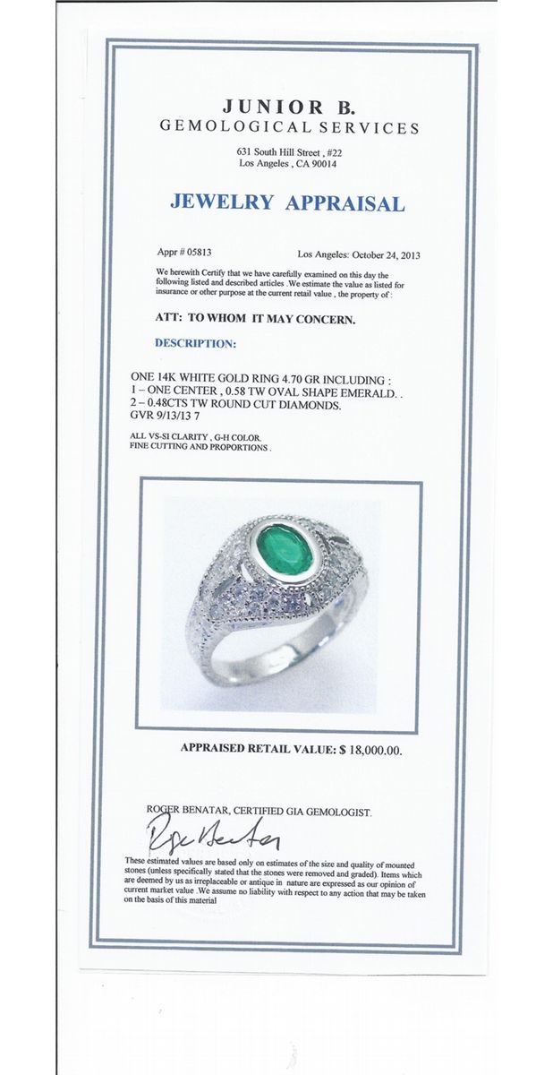 14kt White Gold 4.70 Approx grams including, .58ct Emerald oval .48cttw Round Diamond G-H color VS-SI clarity, size 7, Appraised Retail Value$18,000.00