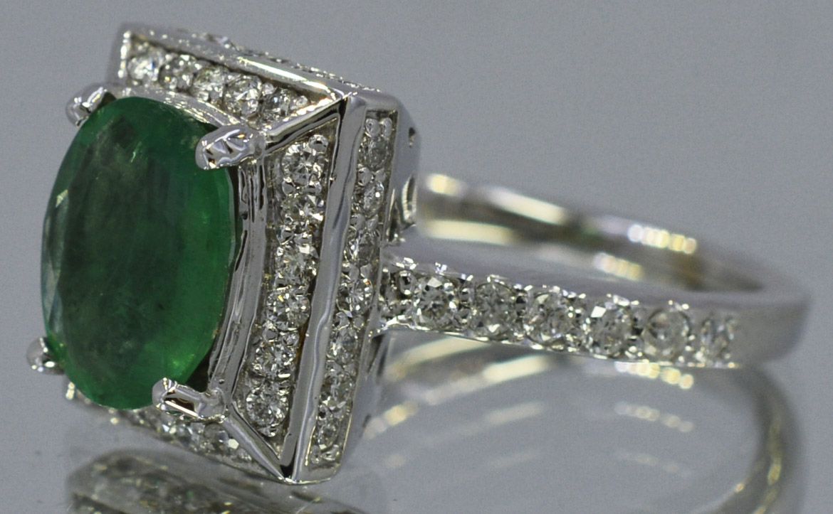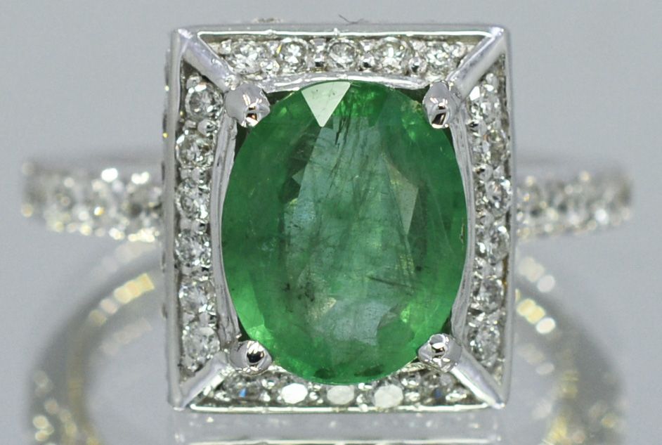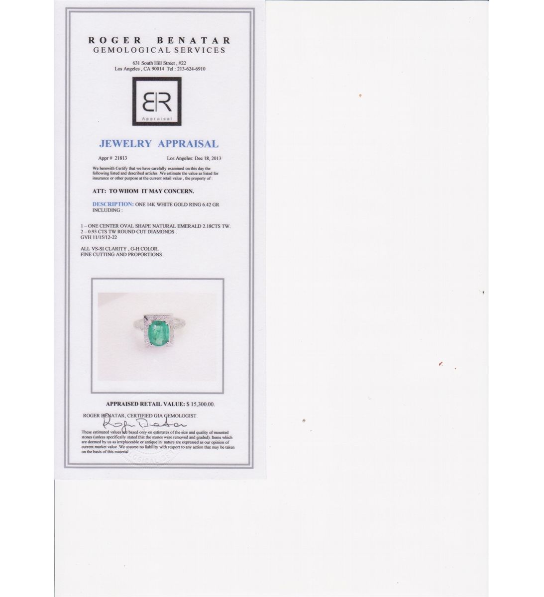 14kt White Gold 6.42 Approx grams including, 2.18ct Oval Emerald, .93cttw Round Diamond G-H color VS-SI clarity, Appriased Retail Value $15,300.00