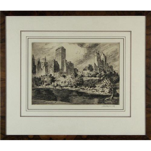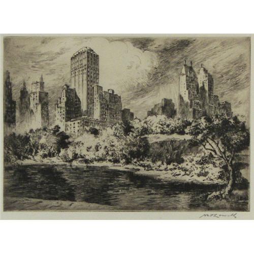 Nat Lowell (1880-1956) Etching, "Central Park South", image size 8 3/4" x 12 1/4", pencil signed, AAA label attached