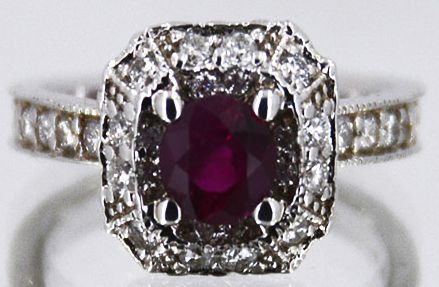 14kt White Gold 4.49 Approx grams 1.00ct Nat. Ruby (Burma color) Round .71cttw Round Diamond G-H color VS-SI clarity, size 6.5, Appraised Retail Value $12,000.00