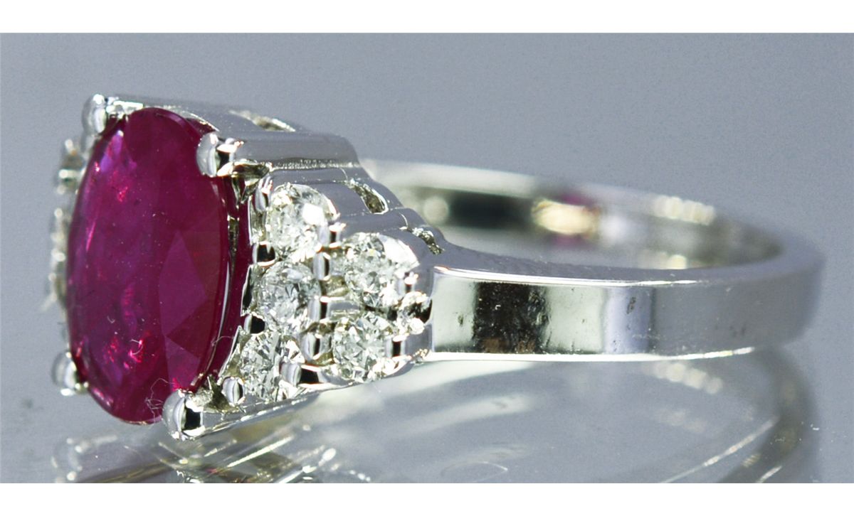 14kt White Gold 3.86 Approx grams including, 1.30ct Ruby Oval cut, .35cttw Round Diamond G-H color VS-SI clairty, size 6.5, Estimated Value $10,000.00,Appraisal will be included upon purchased