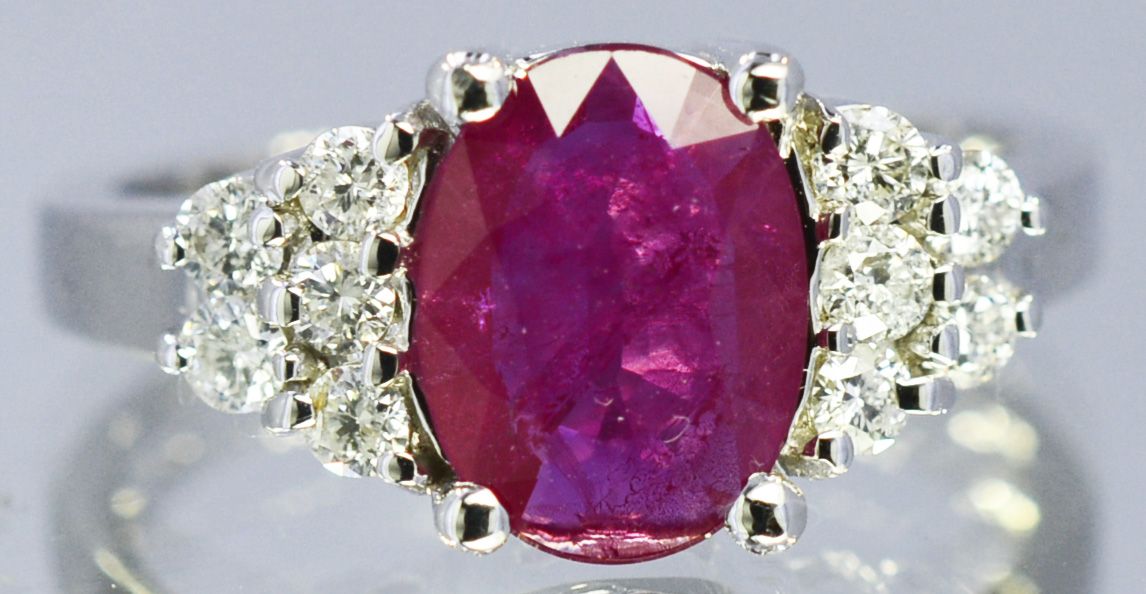 14kt White Gold 3.86 Approx grams including, 1.30ct Ruby Oval cut, .35cttw Round Diamond G-H color VS-SI clairty, size 6.5, Estimated Value $10,000.00,Appraisal will be included upon purchased