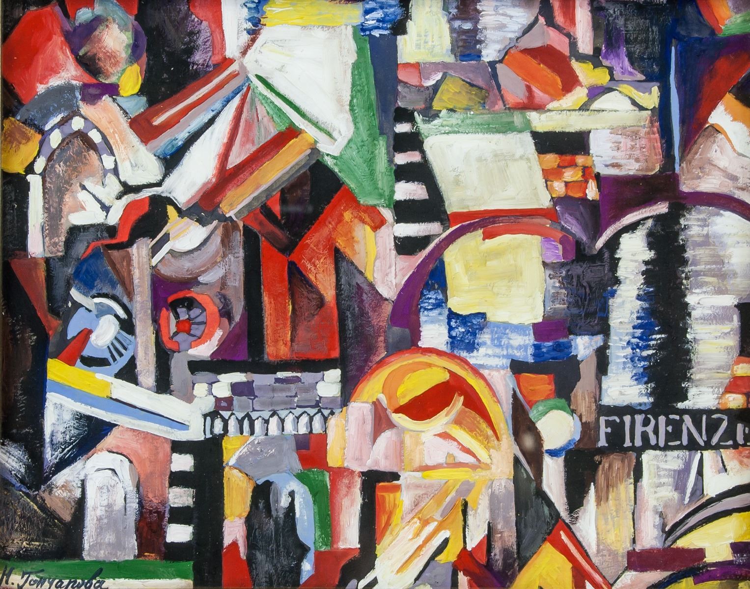 Gouache on paper, framed. Featuring an abstract suprematist expressionist composition. Signed N. Goncharova on the lower left corner. Attributed to Natalia Goncharova (1881-1962, Russian). 19 x 24 cm (7.5 x 9.5 inches). Frame size: 31 x 36.5 cm (12.2 x 14.4 inches). PROVENANCE: Southern Ontario estate