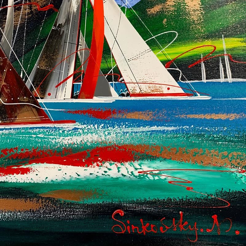 This is a custom framed original acrylic painting on canvas by Natalia Sinkovsky. Hand signed by the artist, the piece includes letter of authenticity. Measures approximately 25" x 29" (framed), 20" x 24" (image). This item requires special handling and may have a longer than usual turnaround.