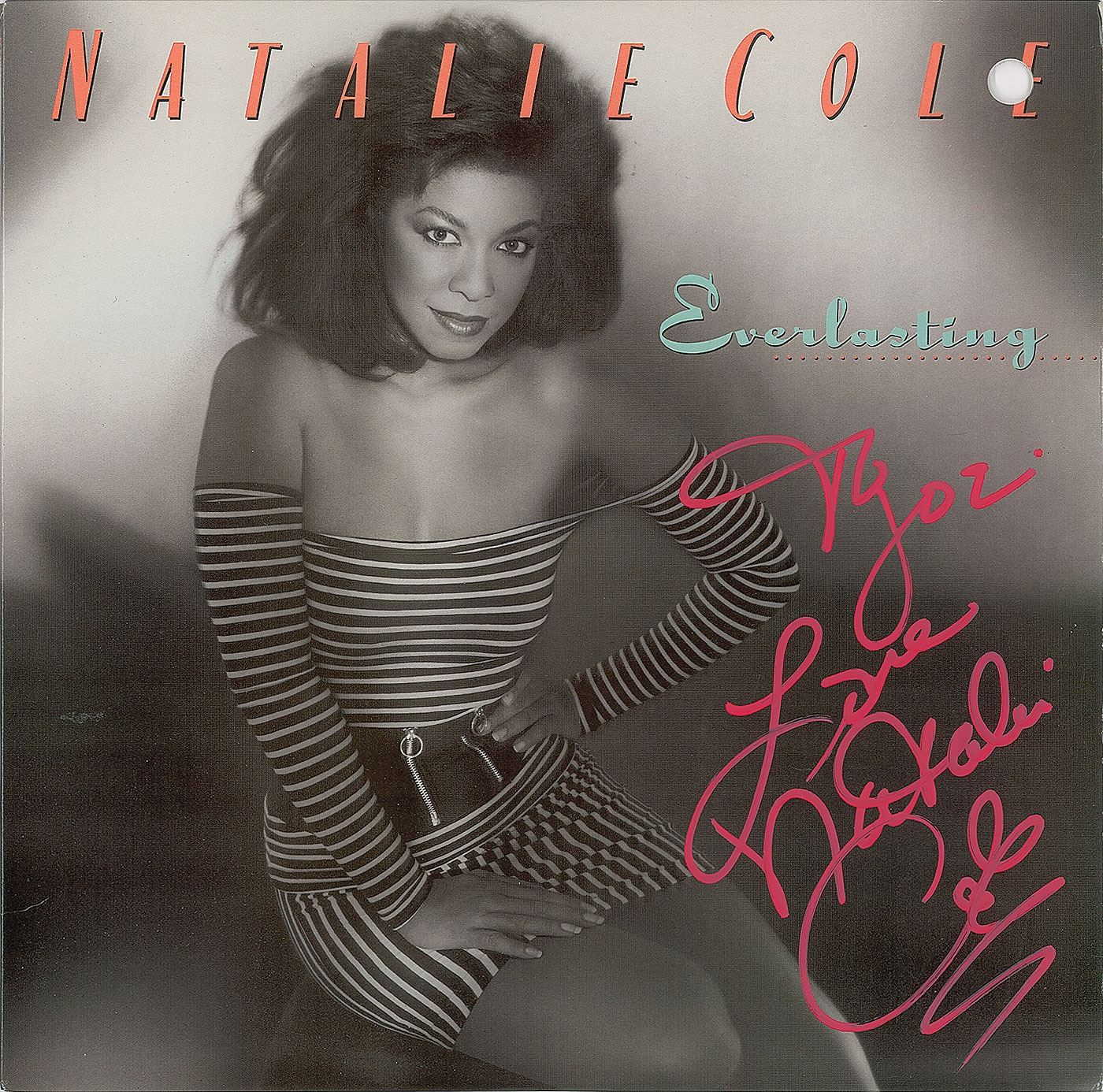 Everlasting album signed and inscribed on the front cover in red paint pen, "To Joe, Love, Natalie Cole." In fine condition, with a discount hole to the upper right corner. The record is included. Consignor notes that the signature was obtained at the Front Row Theater before her show.