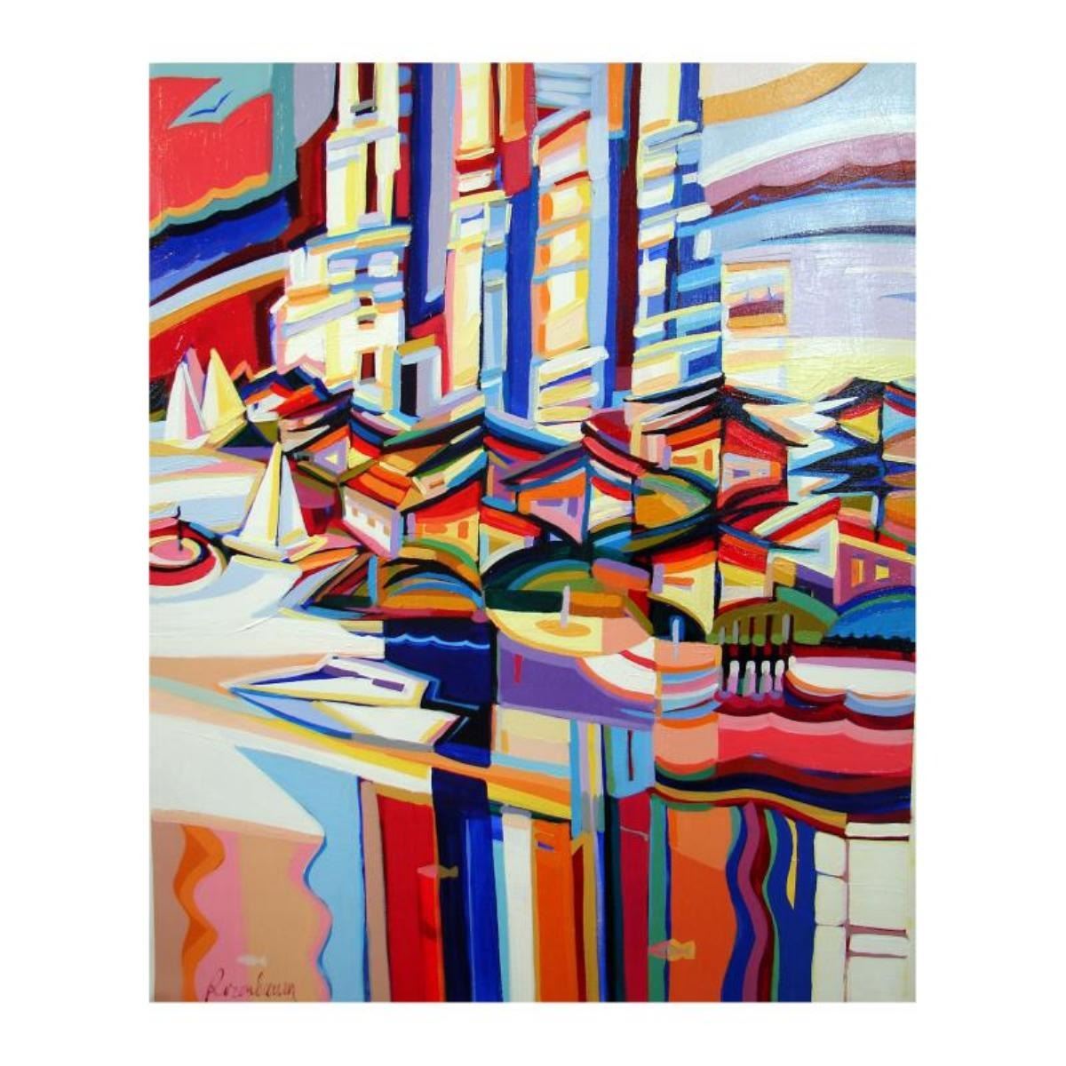 Natalie Rozenbaum, "Colorful Harbor" Limited Edition on Canvas, Numbered and Han