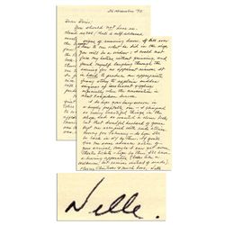 Harper Lee autograph postscript signed within a Christmas card. Beneath a printed sentiment Lee writes, ''...Merry Christmas! Nelle Harper L...