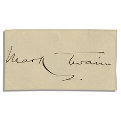 Excellent Samuel Clemens autograph, signed in his famous pen name, ''Mark Twain'' in black ink. Signature is on a small 3.25'...