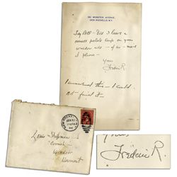 Autograph by architect Frank Lloyd Wright, known for his groundbreaking naturalistic aesthetic. Signed ''Frank Lloyd Wright'' in bla...