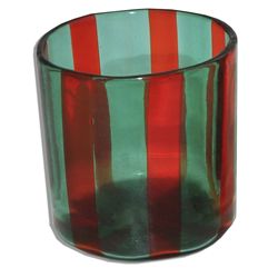 Marlene Dietrich Murano green and red striped glass tumbler. The Venetian tumbler is circa 1960's and measures 3'' in diameter x 3'&...