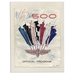 Program cover from the 1967 Indianapolis 500, with 18 race car driver signatures. Program cover is signed by A.J. Foyt, Jim Clark, Jochen Rindt, Bill