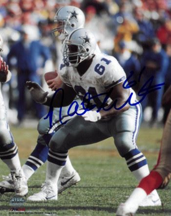 When the USFL folded, Nate Newton signed as a free agent with the Dallas Cowboys in 1986. From 1992 to 1995, together with Erik Williams, Mark Tuinei, Mark Stepnoski and Kevin Gogan, he was part of some of the best offensive lines to play in NFL history. Newton was a six-time Pro Bowler, attending the game from 1992 through 1996 and once again in 1998. Nate Newton has hand signed this Dallas Cowboys 8x10 Photo #61. Certificate of Authenticity from Athlon Sports Collectibles.