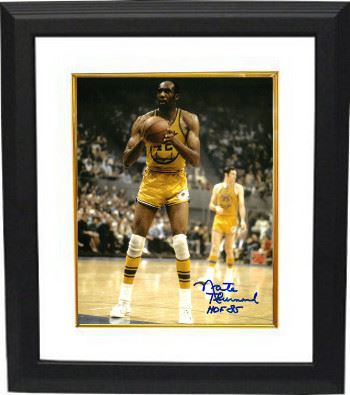 Nate Thurmond was drafted by the San Francisco Warriors in 1963. Despite playing on the same team as the dominant Wilt Chamberlain, Thurmond made an impact and was named to the NBA All-Rookie Team in 1964. Among his many accomplishments, Thurmond still holds the regular season record for rebounds in a quarter with 18. He played in seven NBA All-Star Games while with the Warriors. Nate Thurmond has hand autographed this San Francisco Warriors 8x10 Color Photo with HOF 85 Inscription. Certificate of Authenticity from Athlon Sports. Custom White Mat and Premium Black Color Framed as shown.