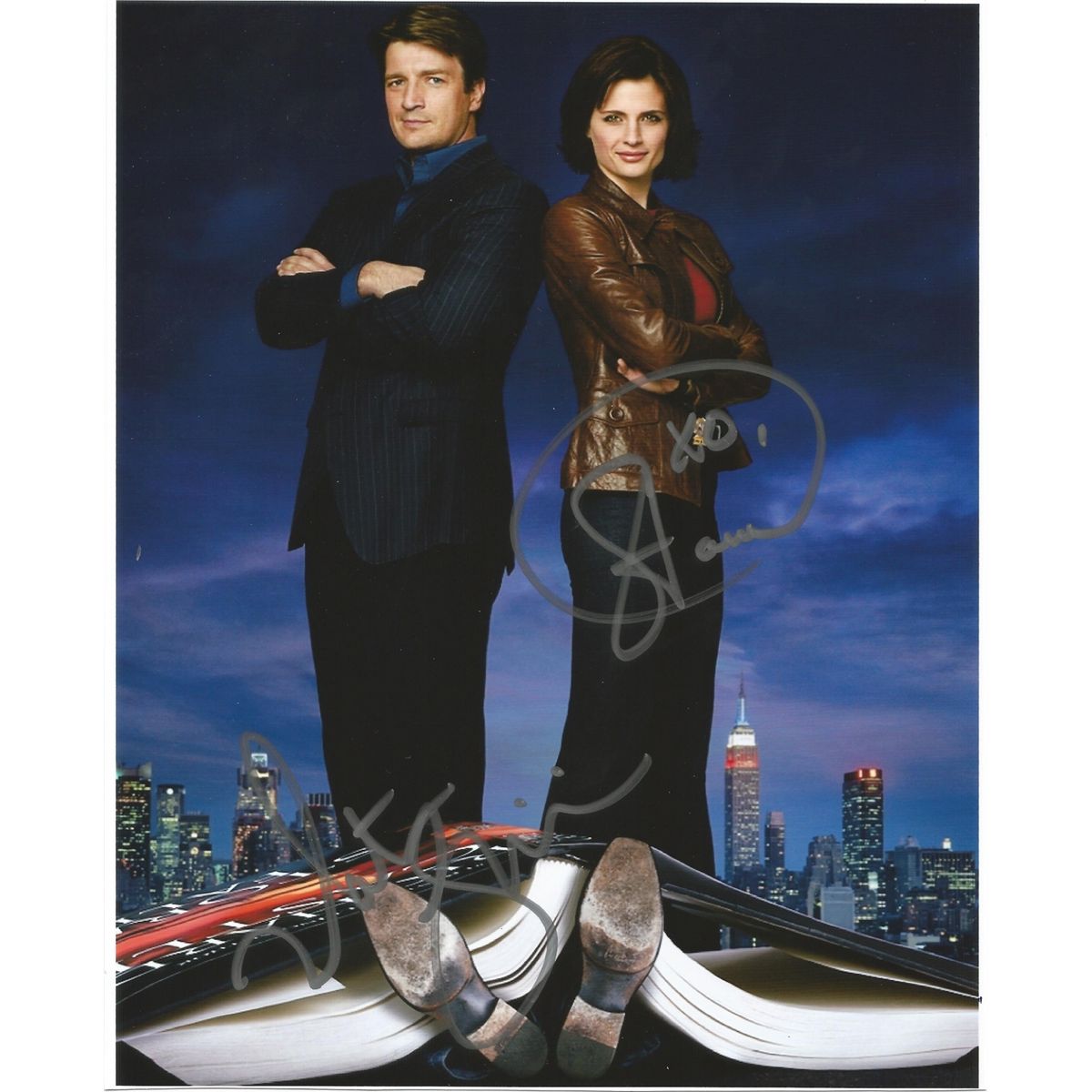 Signed color 8x10 by Nathan FIllion and co-star Stana Katic