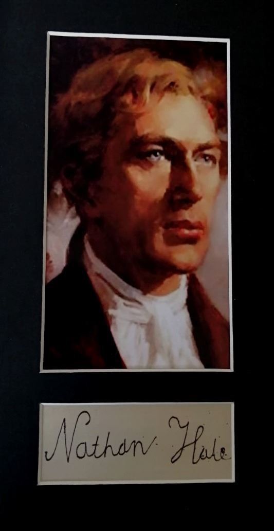 Nathan Hale cut signature. Mounted and framed and supplied with coa.