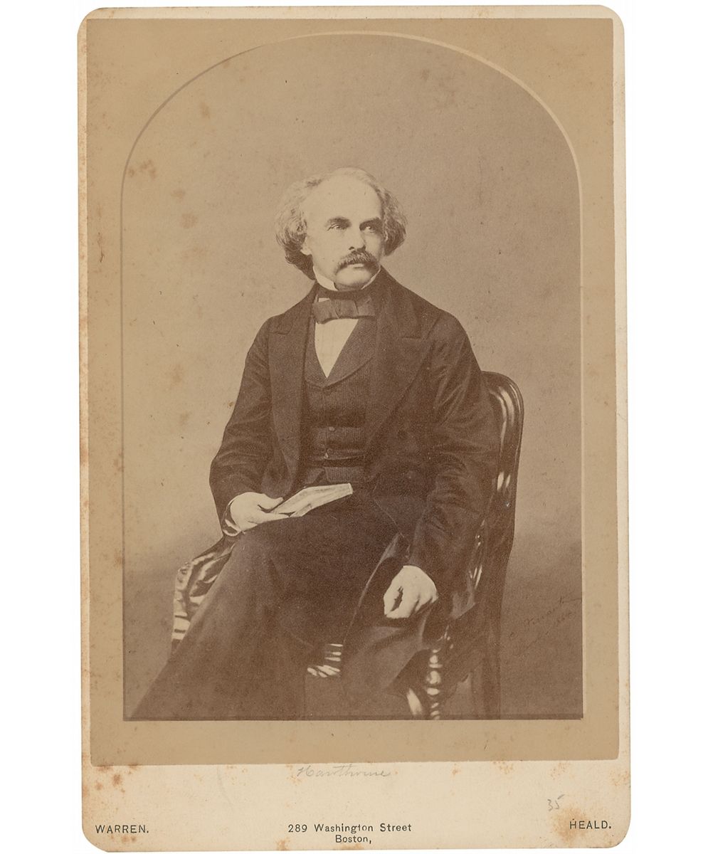 Original circa 1870s cabinet card of Hawthorne, 4.25 x 6.5, by the prominent Warren of Boston. Toning and foxing to the image, light edge wear and pencil note to reverse.