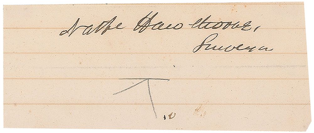 Ink signature, “Nath’l Hawthorne, Surveyor,” on an off-white 4 x 1.75 lightly-lined slip. In fine condition.