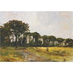 Nathaniel Hone RHA (1831-1917) FIELD WORKERS signed with initials lower left oil on canvas laid on board 33 by 46cm., 13 by 18in. Provenance: Collection of Commander Brooke (inscribed on reverse); James Adam, Dublin, 24 March 1983, lot 154; Private collection, Dublin