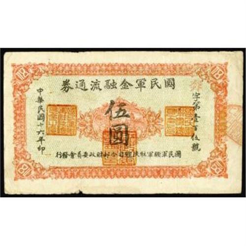 <style type="text/css"> body, td, th { font-family: Arial, Helvetica, sans-serif; font-size: 12px; color: #482424; margin: 0px; padding: 0px; } #header { background-image: url(http://www.bowersandmerena.com/ebay/images/template_v3_01.gif); clear: both; background-color: #590303; border-top-width: 2px; border-top-style: solid; border-top-color: #B38C4F; } #header #header_wrapper { height: 75px; clear: both; width: 800px; margin-right: auto; margin-left: auto; background-image: url(http://www.bowersandmerena.com/ebay/images/template_v3_03.gif); background-repeat: no-repeat; background-position: right; color: #F3EDCC; } #header #header_wrapper #header_logo { float: left; height: 75px; width: 444px; background-image: url(http://www.bowersandmerena.com/ebay/images/template_v3_02.gif); background-repeat: no-repeat; font-size: 10px; text-transform: capitalize; color: #B38C4F; } #header #header_wrapper #header_right { float: left; height: 75px; width: 356px; text-align: right; } #header #header_wrapper #header_right #headerLoginBtn { margin-bottom: 30px; } #header #header_wrapper #header_right input#txtSearch { color: #B49056; border: 1px solid #B49056; width: 175px; padding-top: 3px; padding-right: 3px; padding-bottom: 4px; padding-left: 3px; } #nav { height: 37px; background-image: url(http://www.bowersandmerena.com/ebay/images/template_v3_05.gif); clear: both; } #nav #nav_wrapper { height: 35px; width: 800px; margin-right: auto; margin-left: auto; border-left-width: 1px; border-left-style: solid; border-left-color: #B38C4F; } #nav #nav_wrapper a { padding-right: 15px; padding-left: 15px; border-right-width: 1px; border-right-style: solid; border-right-color: #B38C4F; height: 25px; padding-top: 10px; display: block; float: left; text-decoration: none; font-weight: bold; color: #5D0303; } #nav #nav_wrapper a:hover { color: #B38C4F; } #nav #nav_wrapper #search { float: right; padding-top: 7px; } #nav #nav_wrapper #search #txtSearch { font-family: Arial, Helvetica, sans-serif; font-size: 10px; text-transform: uppercase; color: #D2AE75; border: 1px solid #B38C4F; padding: 3px; } #content_bgd { background-image: url(http://www.bowersandmerena.com/ebay/images/template_v3_09.gif); background-repeat: repeat-y; background-position: center; padding-top: 15px; padding-bottom: 15px; background-color: #FBFBDB; } #content_wrapper { clear: both; height: auto; width: 800px; margin-right: auto; margin-left: auto; } .LotDetailWhite { line-height:normal; font-size:13px; font-family: arial,helvetica,sans-serif; color: White; font-weight: bold; } .LotDetailInformation { line-height:normal; font-size: 13px; font-family: arial,helvetica,sans-serif; } .LotDetailMessage { line-height:normal; font-size: 13px; font-family: arial,helvetica,sans-serif; color: red; } } tr.HeaderAuctionTitle td { color: #000000; font-weight: bold; padding: 2px; background-image: url(http://www.bowersandmerena.com/ebay/images/template_v3_05.gif); background-repeat: repeat-x; border-bottom-width: 1px; border-bottom-style: solid; border-bottom-color: #B38C4F; } table.AuctionSummary a, table.AuctionSummary a:link, table.AuctionSummary a:visited { color: #0000FF; text-decoration: none; } } td.tableHeaderLeft { border-left-width: 1px; border-left-style: solid; border-left-color: #B38C4F; } td.tableHeaderRight { border-right-width: 1px; border-right-style: solid; border-right-color: #B38C4F; } td.tableCellMiddle { border-left-width: 1px; border-left-style: solid; border-left-color: #B38C4F; border-right-width: 1px; border-right-style: solid; border-right-color: #B38C4F; padding: 5px; } tr.footer td { border-top-width: 1px; border-top-style: solid; border-top-color: #B38C4F; } </style> </head> <body> <div id="header"> <div id="header_wrapper"> <div id="header_logo"> </div> <div id="header_right"> </div> </div> </div> <div id="nav"> <div id="nav_wrapper"> <a href="http://www.bowersandmerena.com">Our eBayLive Auctions</a> <a href="#PaymentInfo">Payment Information</a> <a href="#ShippingInfo">Shipping Information</a> <a href="#About">About Bowers and Merena</a> </div> </div> <div id="content_bgd"> <div id="content_wrapper"> <table width="100%" border="0" cellpadding="5" cellspacing="0" class="AuctionSummary"> <tbody> <tr class="HeaderAuctionTitle" style="height: 25px;"> <td align="left" class="tableHeaderLeft" > </td> <td align="center" class="tableHeaderRight"> <span style="font-size: large;">Lot #865. Military Issues. National Army, 1927 Issue.</span> </td> </tr> <tr> <td colspan="3" class="tableCellMiddle"> 1927, 5 Yuan, P-S3916, red on green, Fine to Fine+ condition.